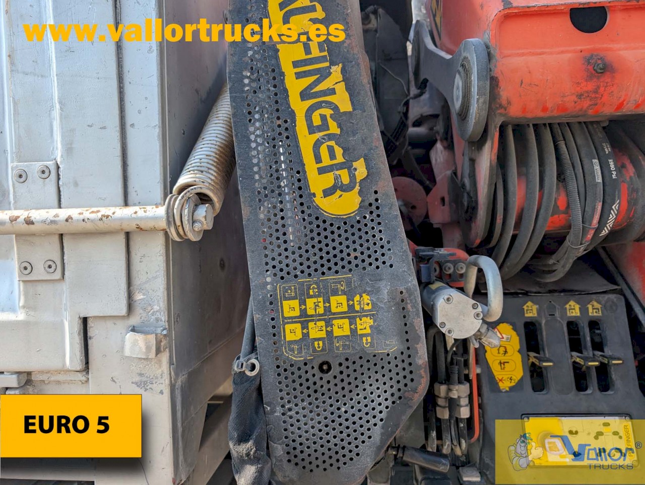 | Aire acondicionado, luces de emergencia, tercer eje elbable, gancho rockinger y direccionable, volquete y grua PALFINGER PK 18002 EH E ( max 5650kg ) |